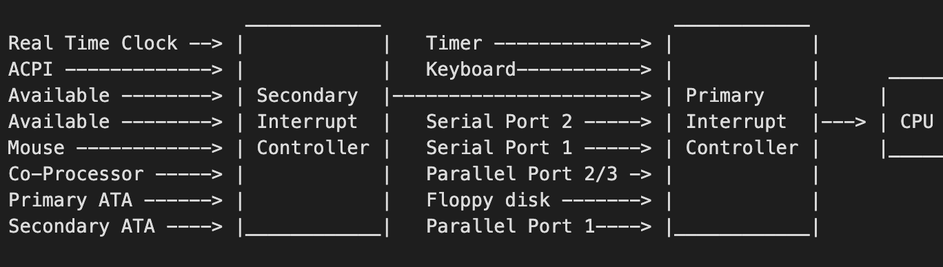 当时的典型系统配备了8259 PIC的两个实例,一个实例与一个实例PIC连接到实例之一的中断线: