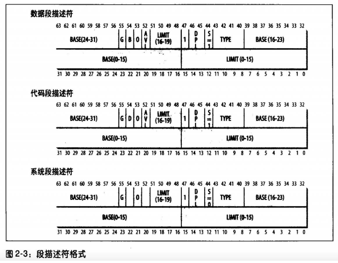 段描述符8个字节(64位),存放在DGT或者LDT中,内部结构如下图